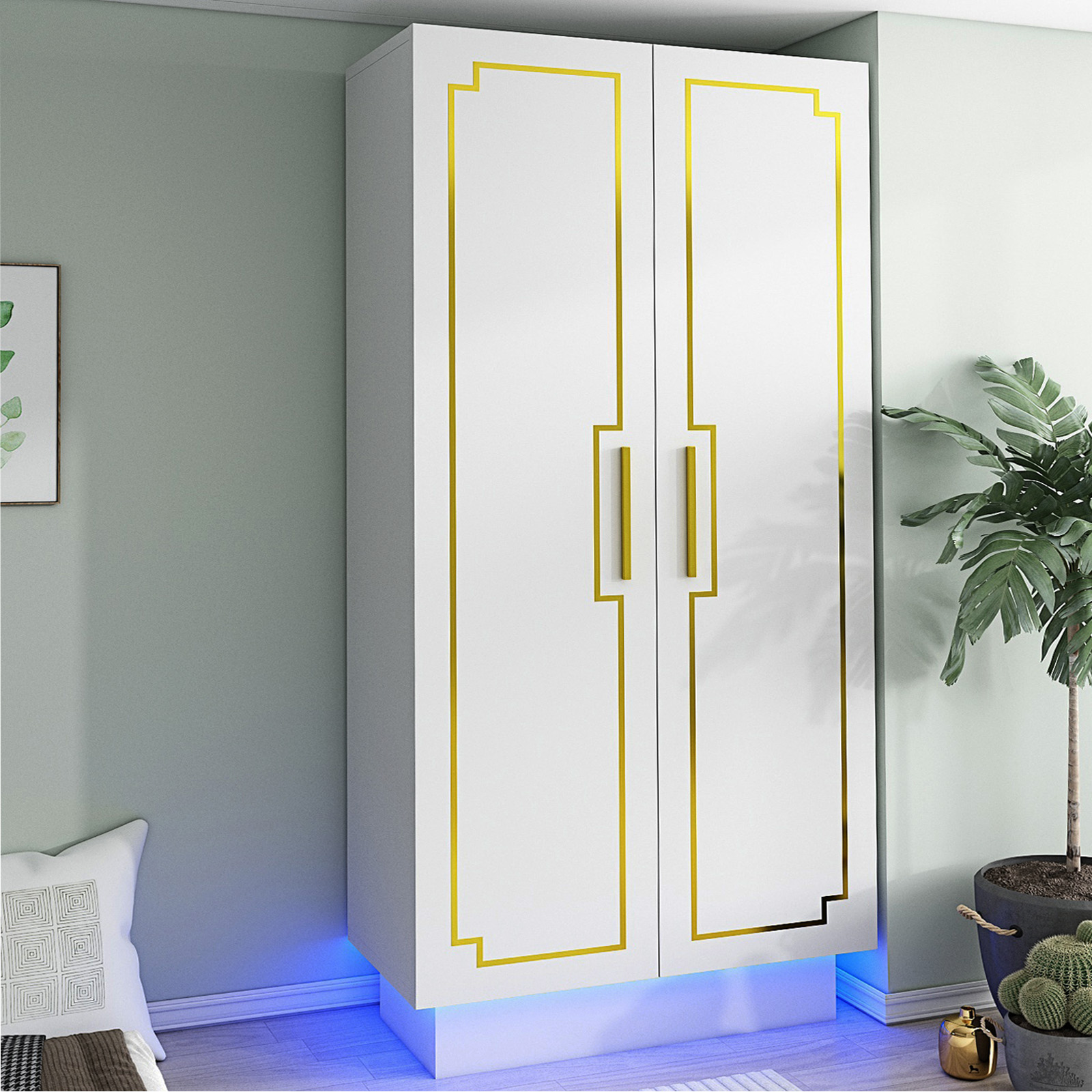 🎄🎄Adorned with a white finish and two gold metal pull handles, this 2-doors armoire will provide convenient and seamless storage anywhere in your home. the equipped anti-tilting device can enhance wardrobe body safety and stability.