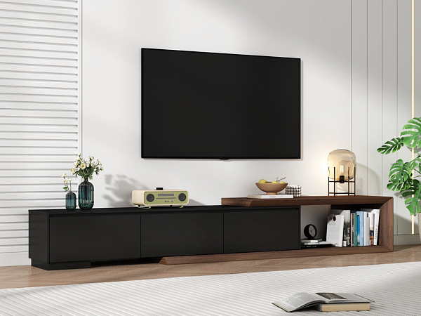 1.Retractable TV Stand: This TV cabinet is very flexible and can adjust the length according to your needs, matching up to a 120-inch TV screen. This feature not only enables it to adapt to different room layouts, but also maximizes space saving.