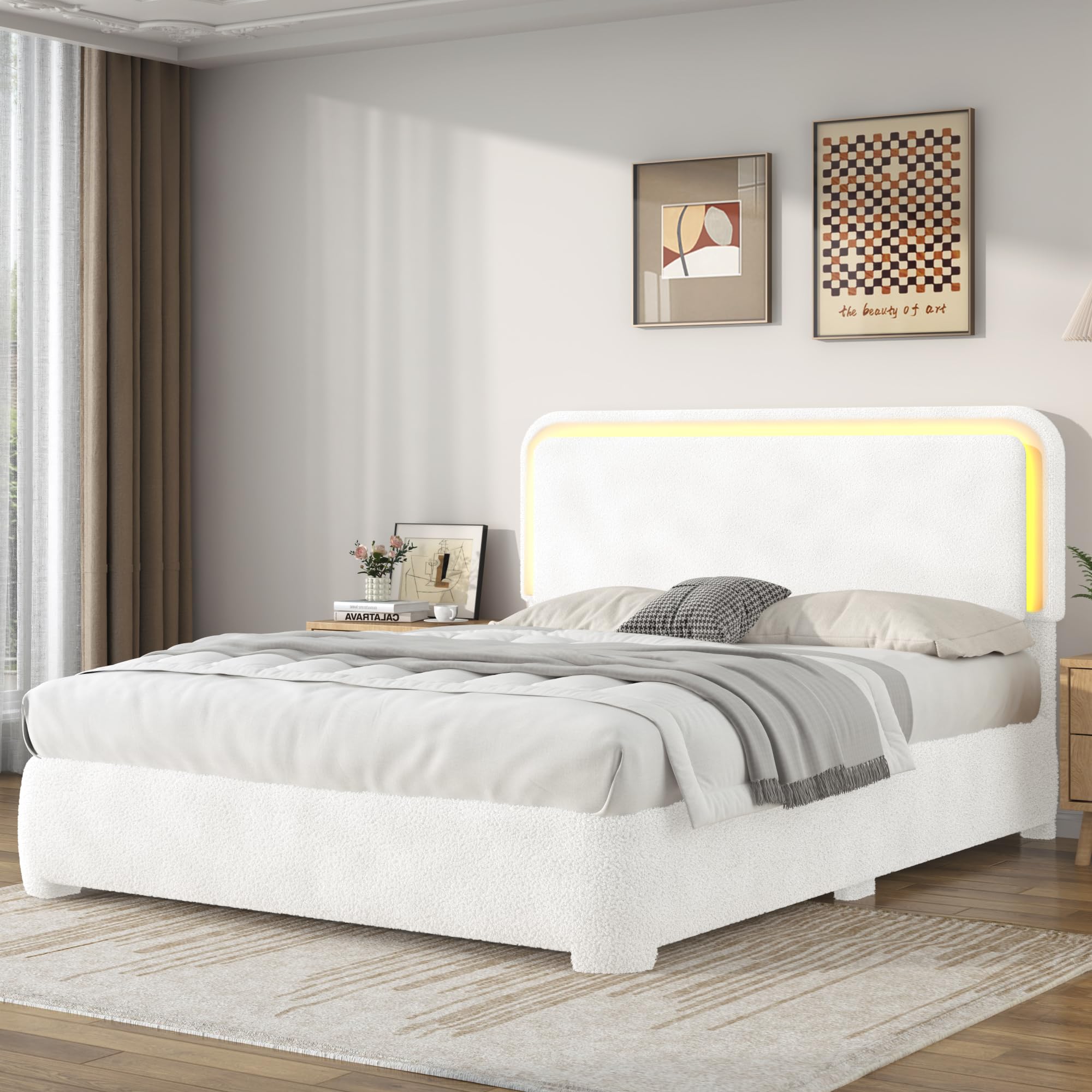 【Modern Fashion Platform Bed with LED Light】Blotout boucle bed frame is not supply comforable touching, but also added a led light on headboard, makes it more cool!! We could use phone APP or remote controller to set the brightness, color, mode and timing function and even control the light jumpping with the sound, create the right sleeping atmosphere; This led bed frame is popular among kids and fashionable people.